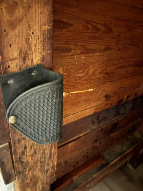 When we bought the Hartford General Store counter in the early 2000s, the revolver was long gone but its holster was still in place. A piece of history with a great gun toting granny story attached to it. The holster will remain it its rightful place as long as we own the counter.